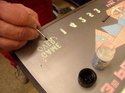 Gerade bei alten Geräten sind die Original-Motiv-Scheiben im Kopfteil des Flippers (Backglass) nicht mehr neu erhältlich. Oftmals weisen diese aber im Laufe der Zeit unschöne Fehlstellen auf.